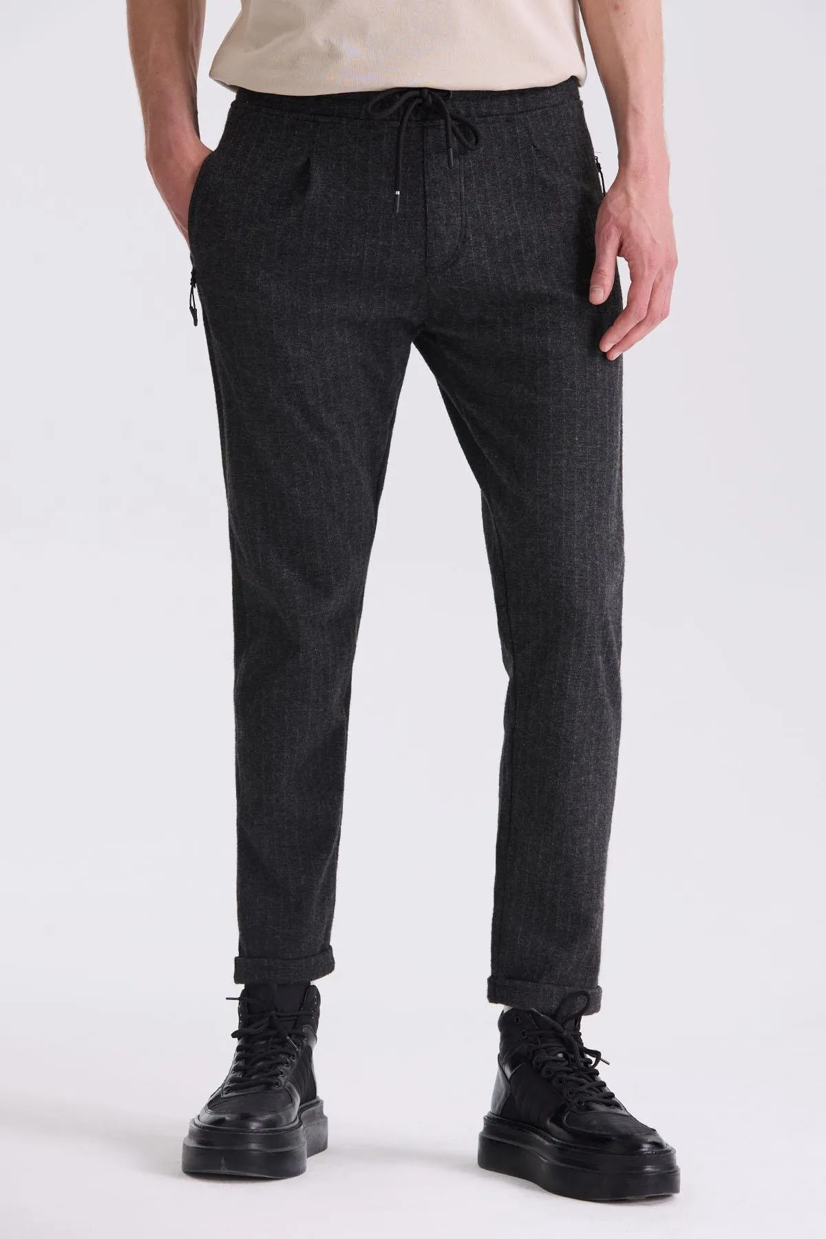 بنطال جوجر رجالي بخطوط جانبية وخصر برباط مع تفاصيل جيوب - Beyond Store