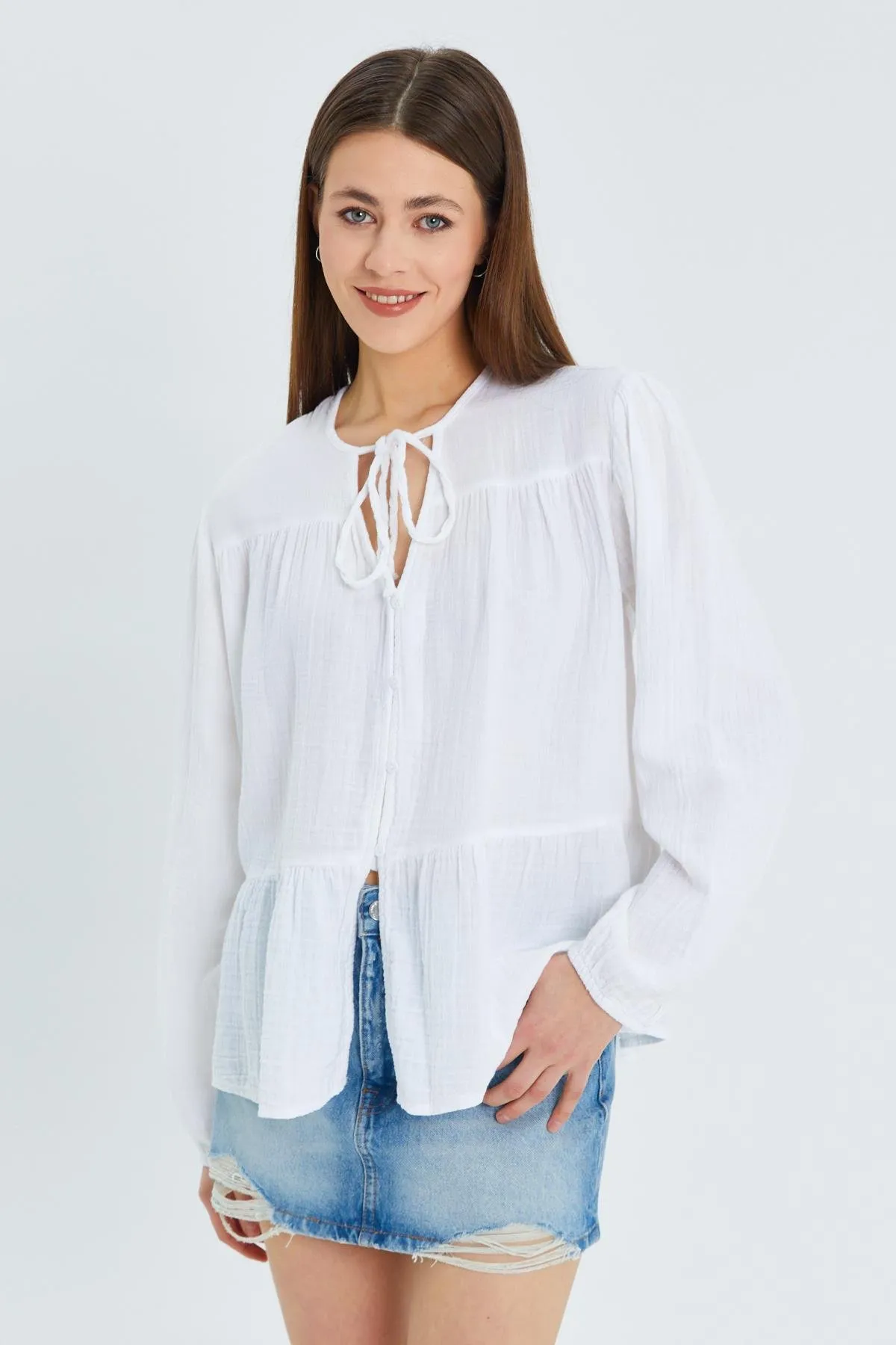قميص بنقشة مربعات مزود بأزرار وجيوب مزدوجة