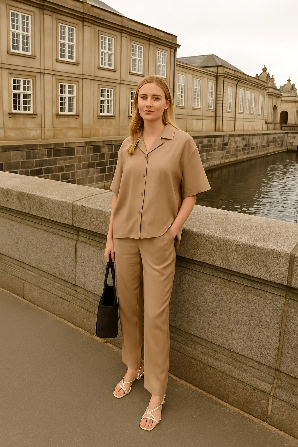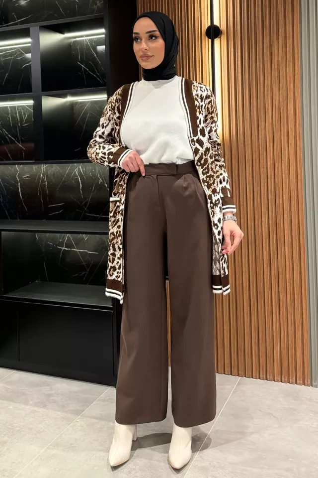 3 قطع بنطلون نسائي واسع الساق برباط خصر و لون موحد - Beyond Store