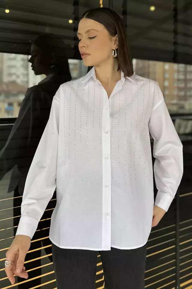 قميص خريفي سادة مزدوج الجيب بأزرار أمامية - Beyond Store