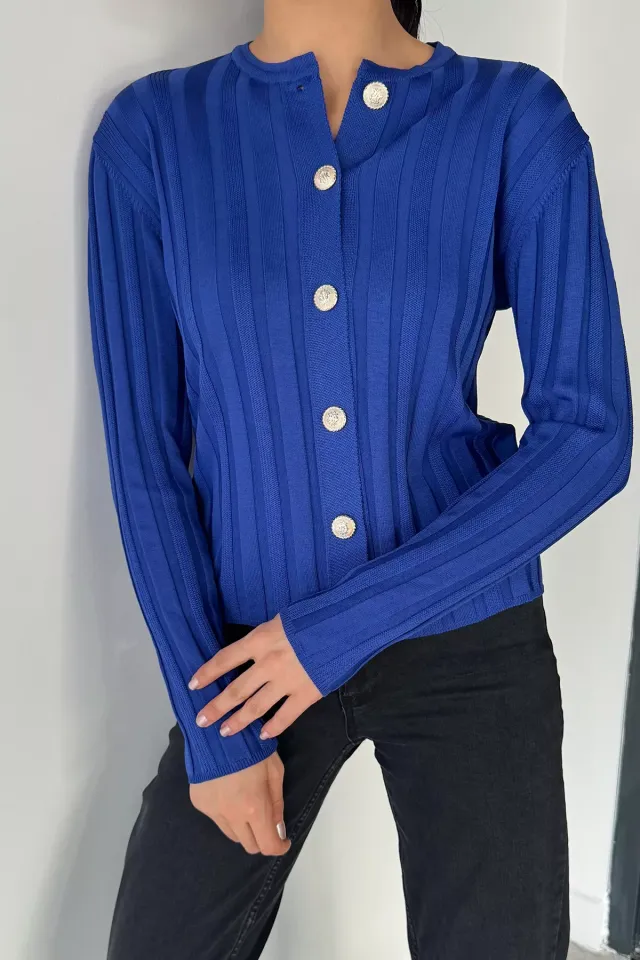 كارديجان محبوك بفتحة رقبة دائرية وأربطة أمامية للنساء