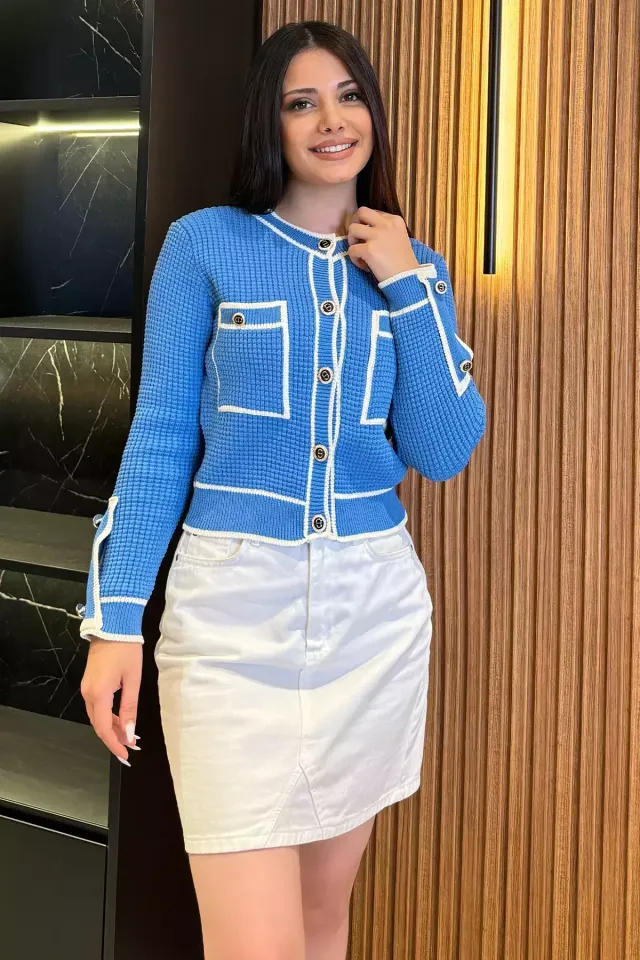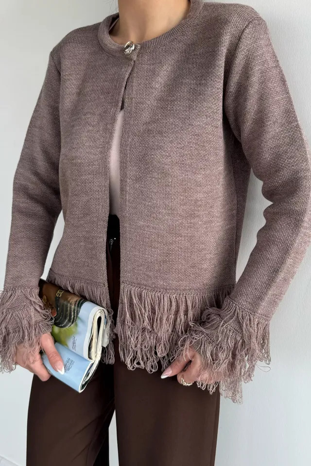 كارديجان محبوك بفتحة رقبة دائرية وأربطة أمامية للنساء - Beyond Store