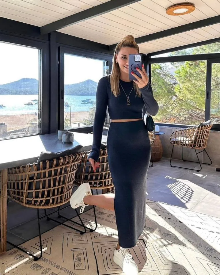 مقاسات الموديل: الارتفاع: 176 سم، الصدر: 90 سم، الخصر: 63 سم، الوركين: 94 سم