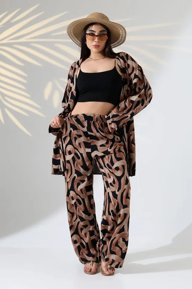 طقم نسائي مكون من بلوزة قصيرة بياقة دائرية وبنطلون بخصر مرتفع - Beyond Store