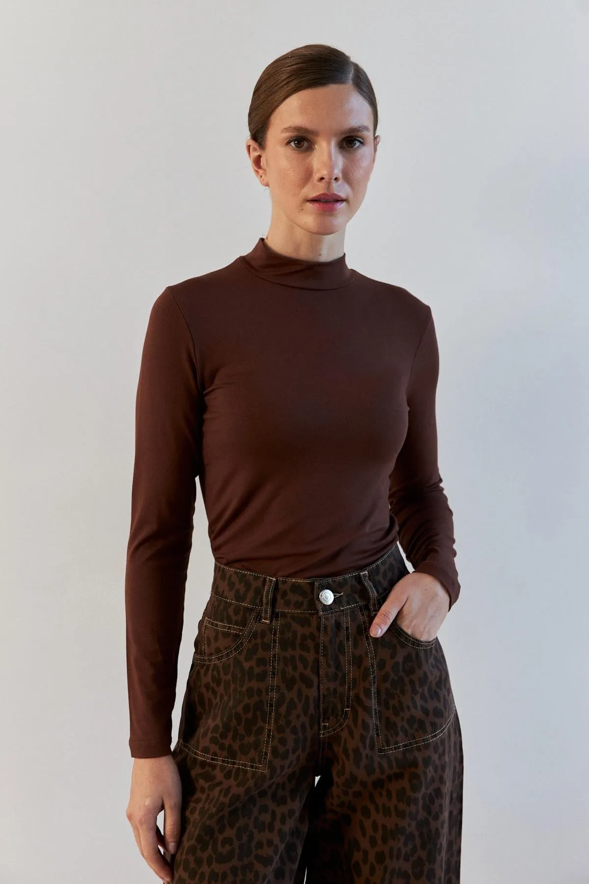 بلوزة سادة بأكمام طويلة وبتفاصيل ثنيات