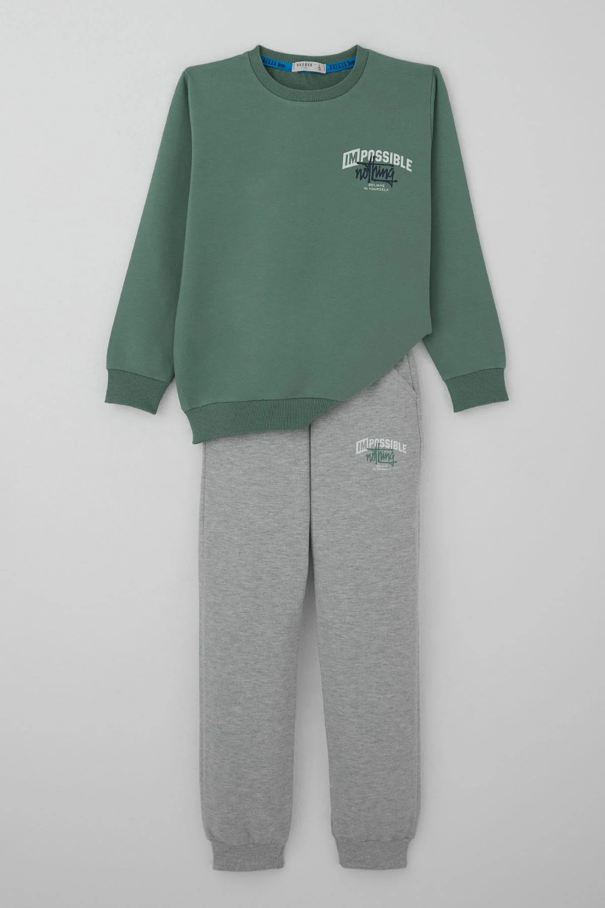 طقم كاجوال مريح للأولاد يتميز بتيشيرت بياقة دائرية وتصميم مطبوع مرح، مصنوع من قطن ناعم 100% لراحة فائقة وتهوية ممتازة. مع بنطال عملي مصنوع من مزيج متين من 66% قطن و34% بوليستر لمرونة الاستخدام مناسب للارتداء اليومي. مثالي للطقس المعتدل والمغامرات اليومية. قابل للغسل في الغسالة على درجة حرارة 30 درجة مئوية.
