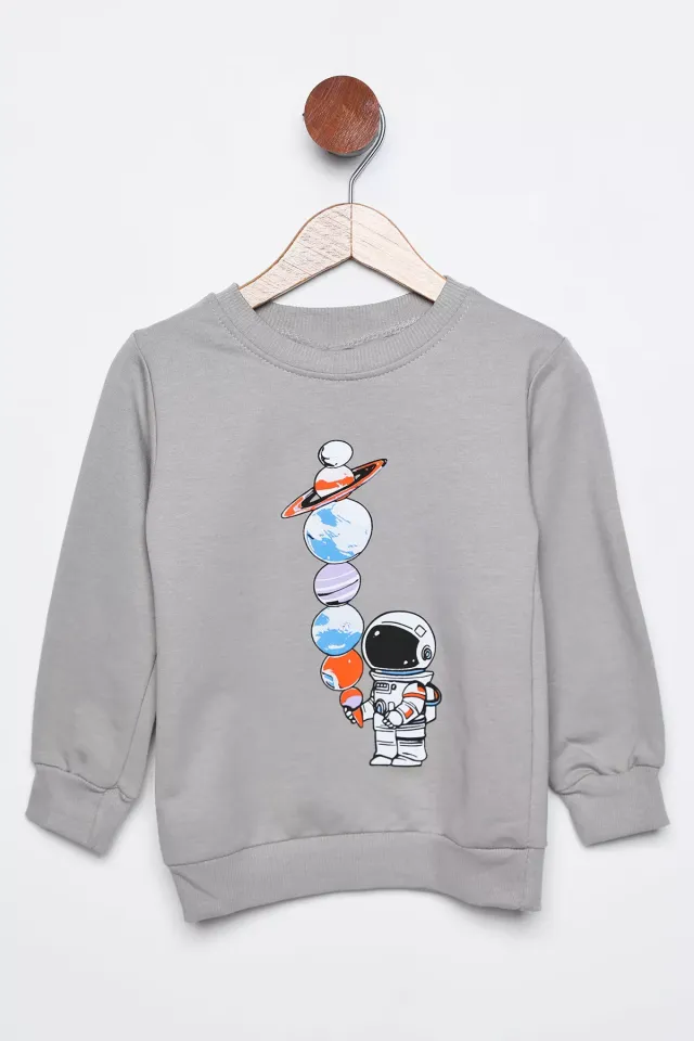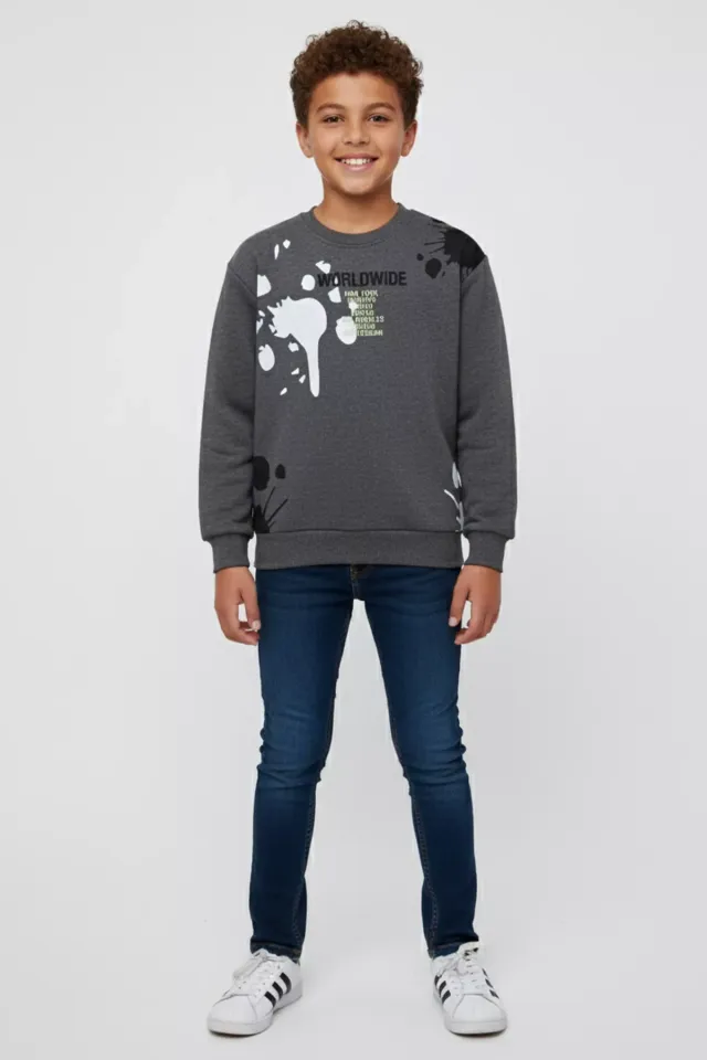 سويت شيرت للأولاد مصنوع من قماش قطني سميك للشتاء. مطبوع عليه ديناصورات. يحتوي على آثار ديناصورات ثلاثية الأبعاد على أحد الذراعين. يتم إنتاج جميع منتجات Denokids مع مراعاة سلامة الأطفال وتم تمريرها عبر أجهزة كشف الإبر.