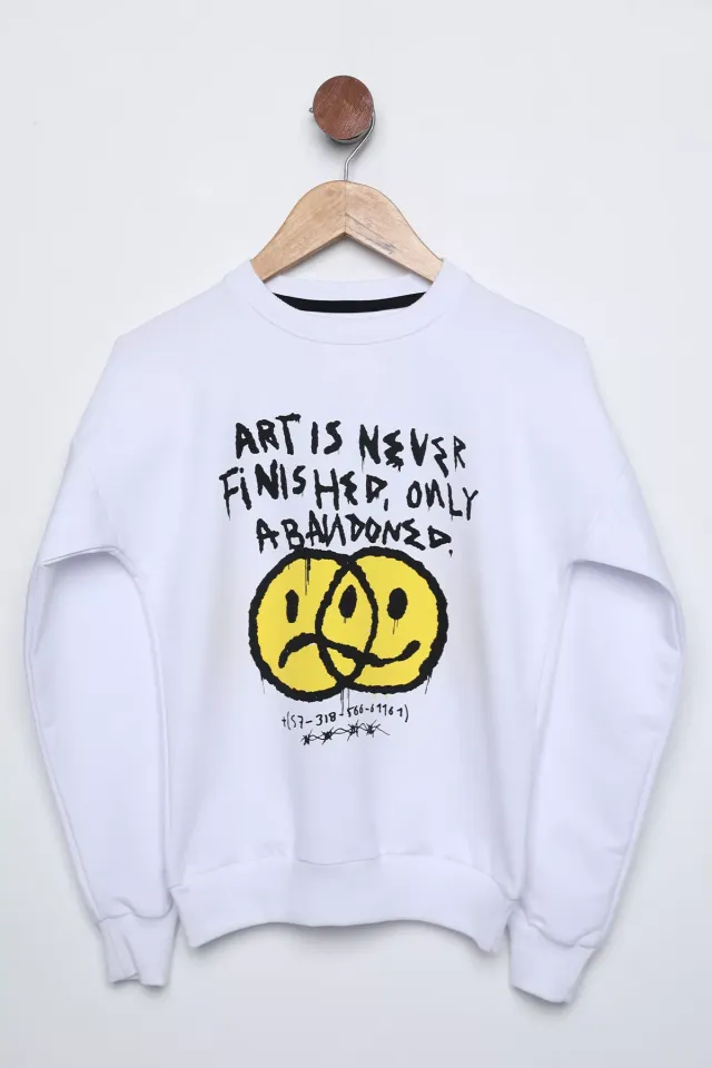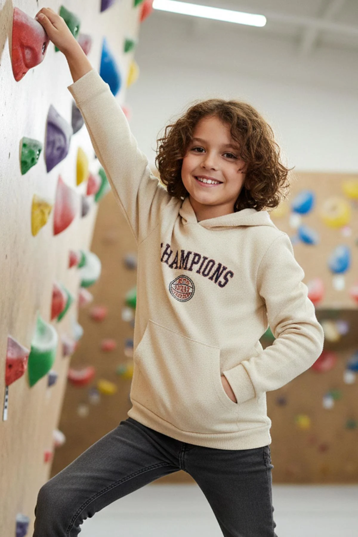 سويت شيرت للأولاد مصنوع من قماش قطني سميك للشتاء. مطبوع عليه ديناصورات. يحتوي على آثار ديناصورات ثلاثية الأبعاد على أحد الذراعين. يتم إنتاج جميع منتجات Denokids مع مراعاة سلامة الأطفال وتم تمريرها عبر أجهزة كشف الإبر.