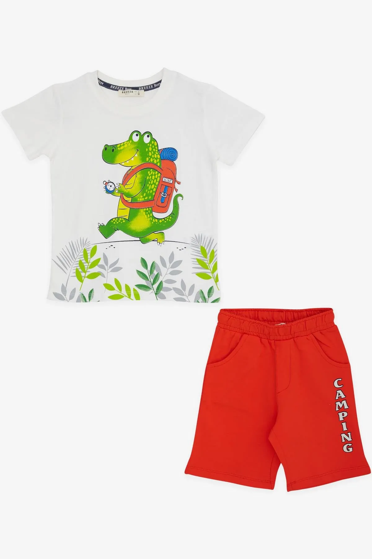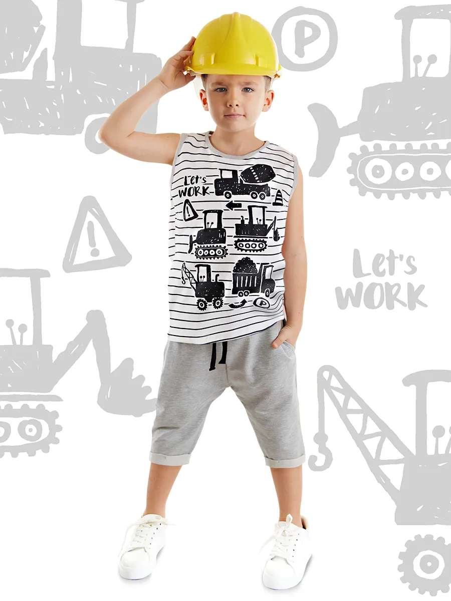 طقم كابري كاجوال بياقة دائرية وطبعة أمامية للأولاد - Beyond Store