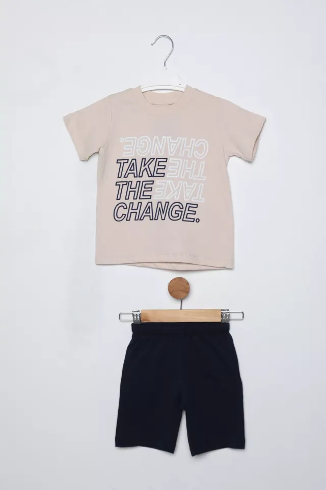 طقم كابري صيفي مطبوع بياقة دائرية للأولاد - Beyond Store
