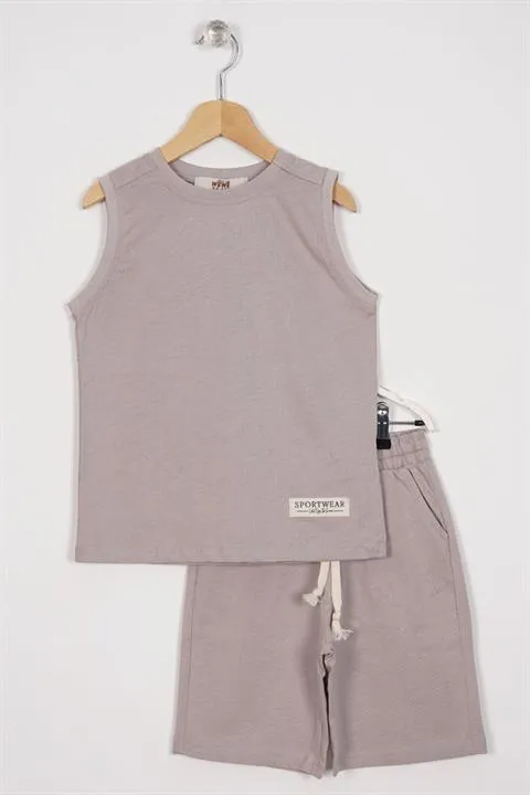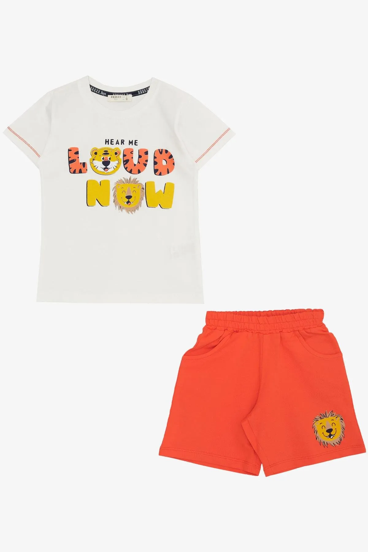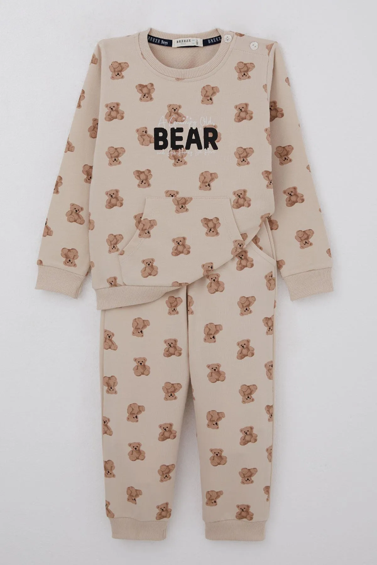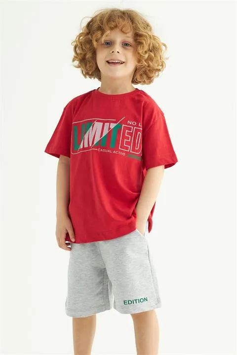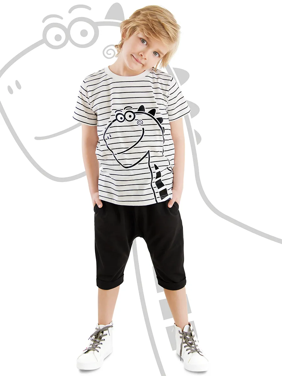 طقم تي شيرت مطبوع و كابري بجيبين للأولاد - Beyond Store