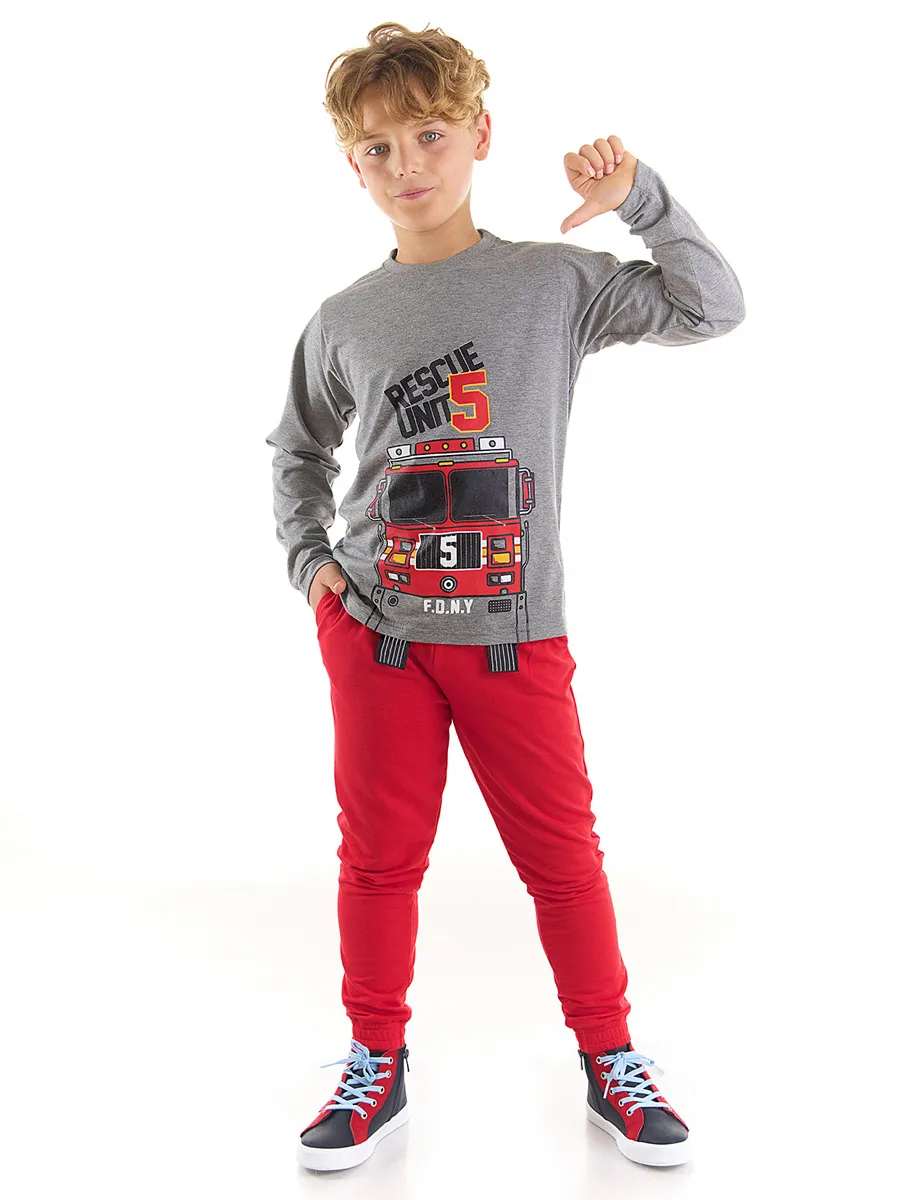 طقم بنطلون مطبوع بأكمام طويلة و ياقة دائرية للأولاد - Beyond Store
