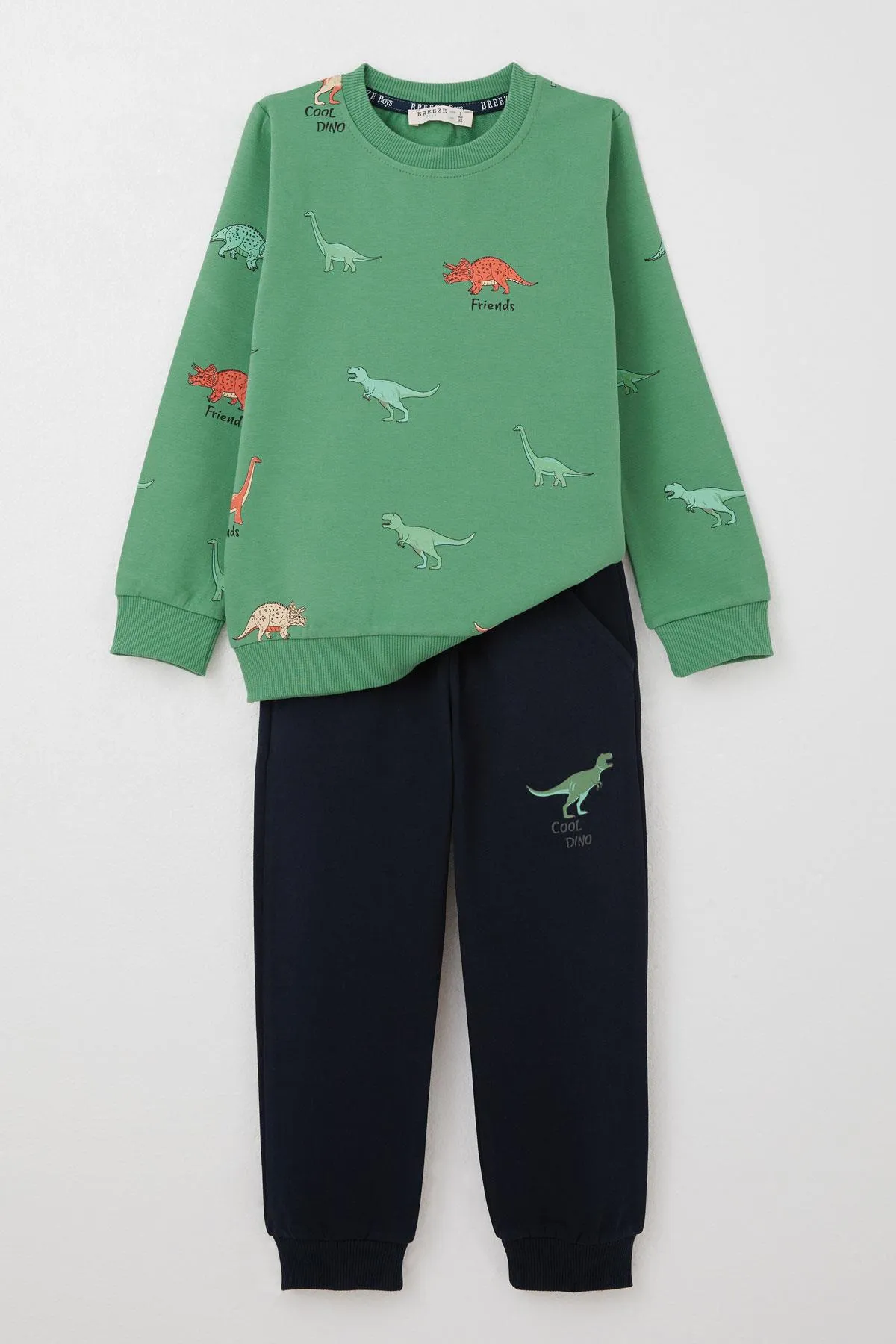 طقم كاجوال مريح للأولاد يتميز بتيشيرت بياقة دائرية وتصميم مطبوع مرح، مصنوع من قطن ناعم 100% لراحة فائقة وتهوية ممتازة. مع بنطال عملي مصنوع من مزيج متين من 66% قطن و34% بوليستر لمرونة الاستخدام مناسب للارتداء اليومي. مثالي للطقس المعتدل والمغامرات اليومية. قابل للغسل في الغسالة على درجة حرارة 30 درجة مئوية.
