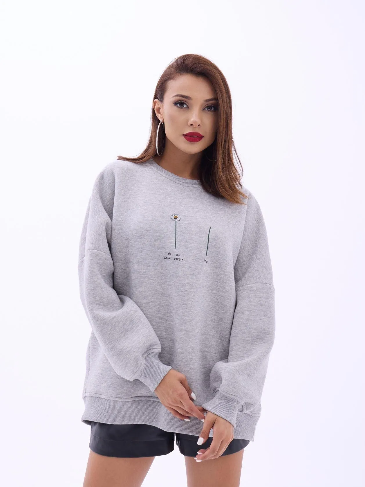 هودي نسائي اوفرسايز بقصة كتف منخفضة و مطرز بشكل قلب