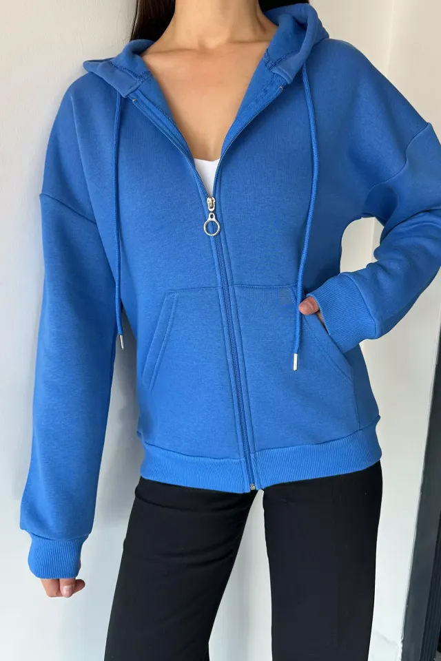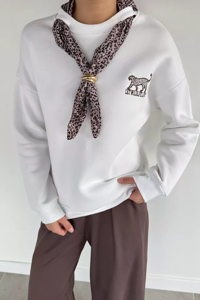 هودي نسائي اوفرسايز بجيب الكنغر و أكمام منقوشة