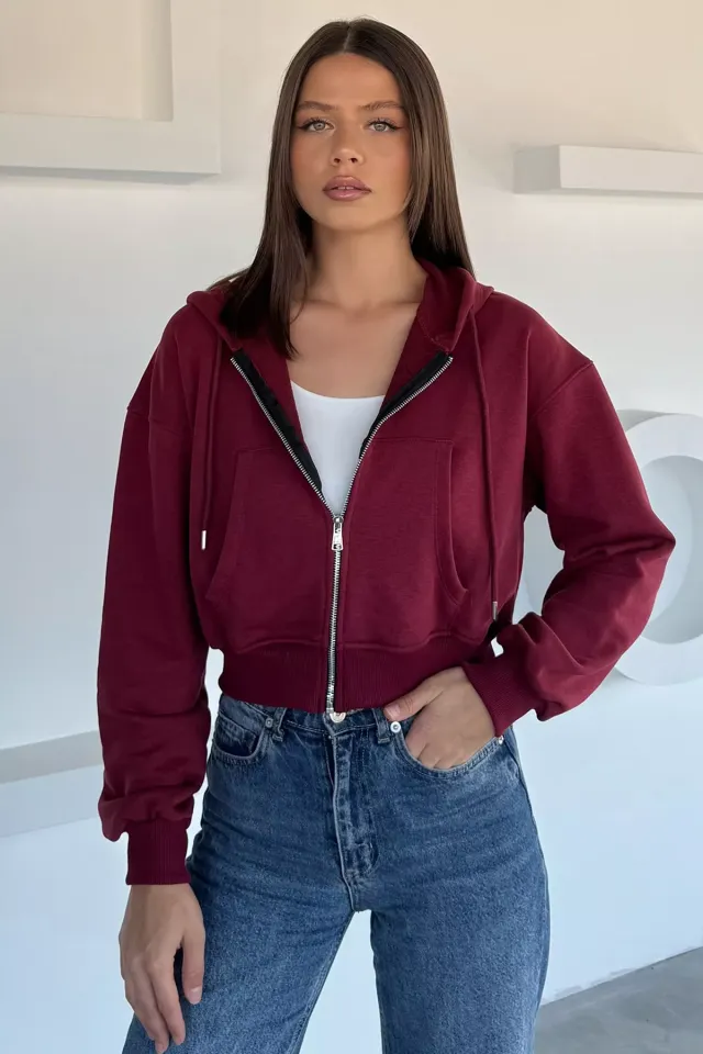 هودي نسائي اوفرسايز بجيب الكنغر و أكمام منقوشة - Beyond Store
