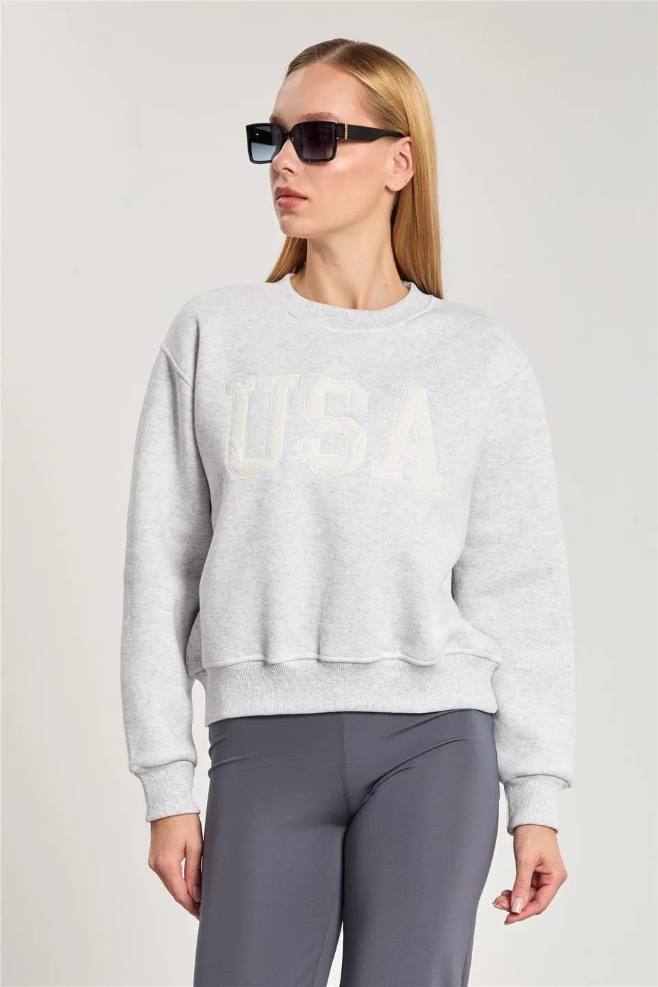 سويتشيرت اوفرسايز مطرز بياقة دائرية للنساء