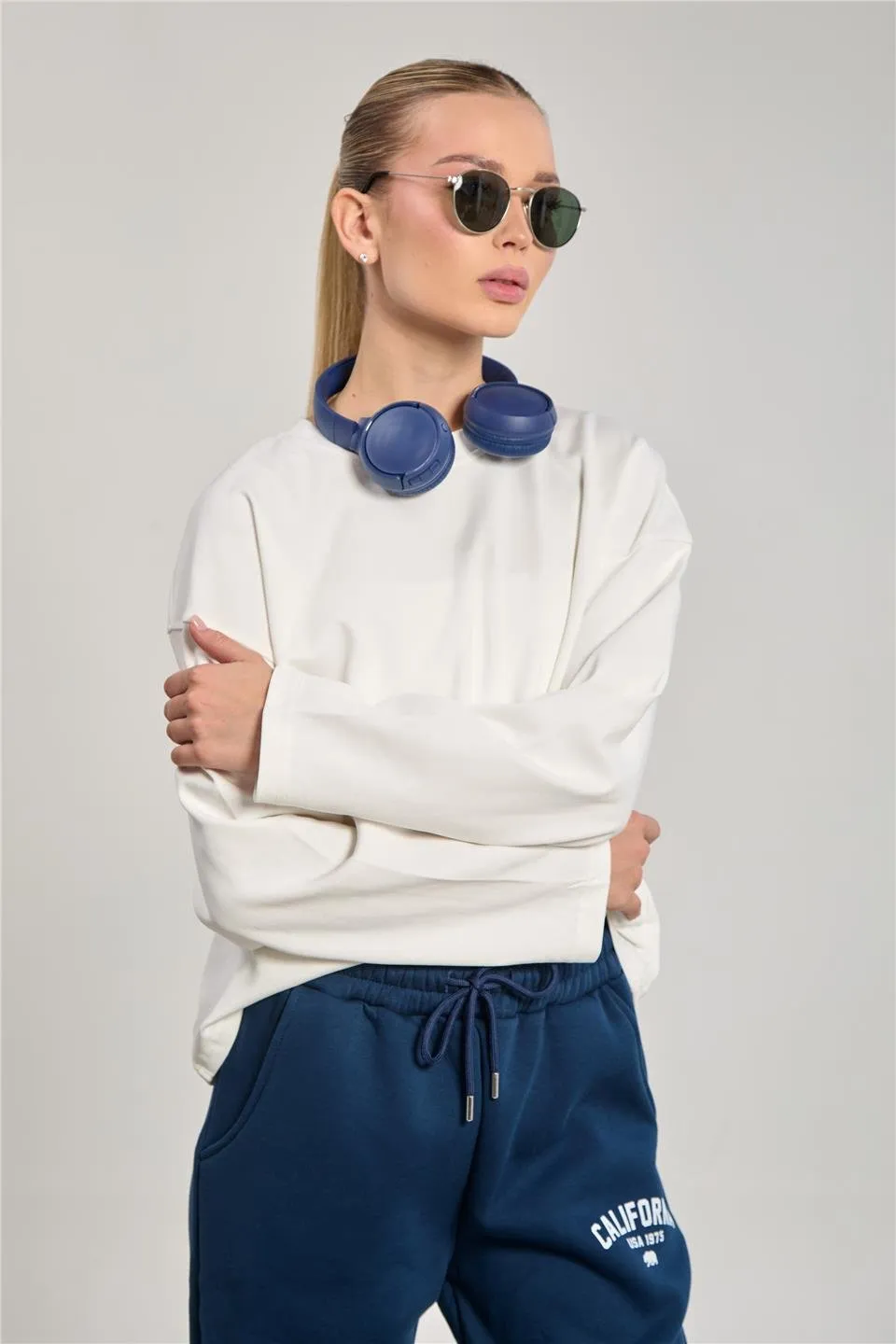 سويتشيرت اوفرسايز مطرز بياقة دائرية للنساء - Beyond Store