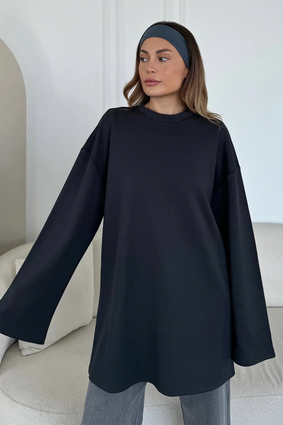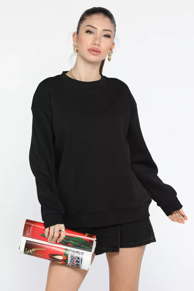 سويتشيرت مطرز بقصّة مريحة و ياقة دائرية للنساء