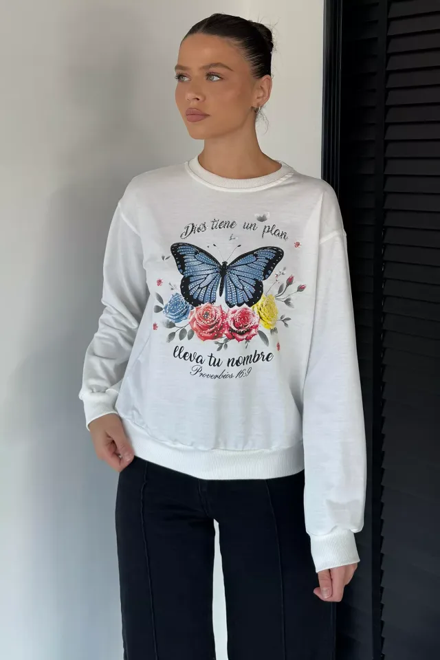 سويتشيرت مطرز بقصّة مريحة و ياقة دائرية للنساء - Beyond Store
