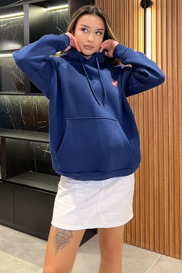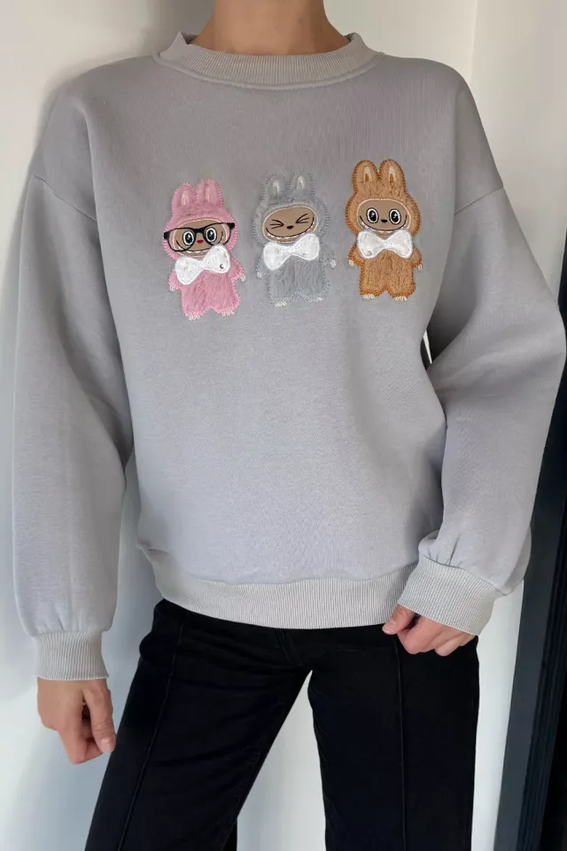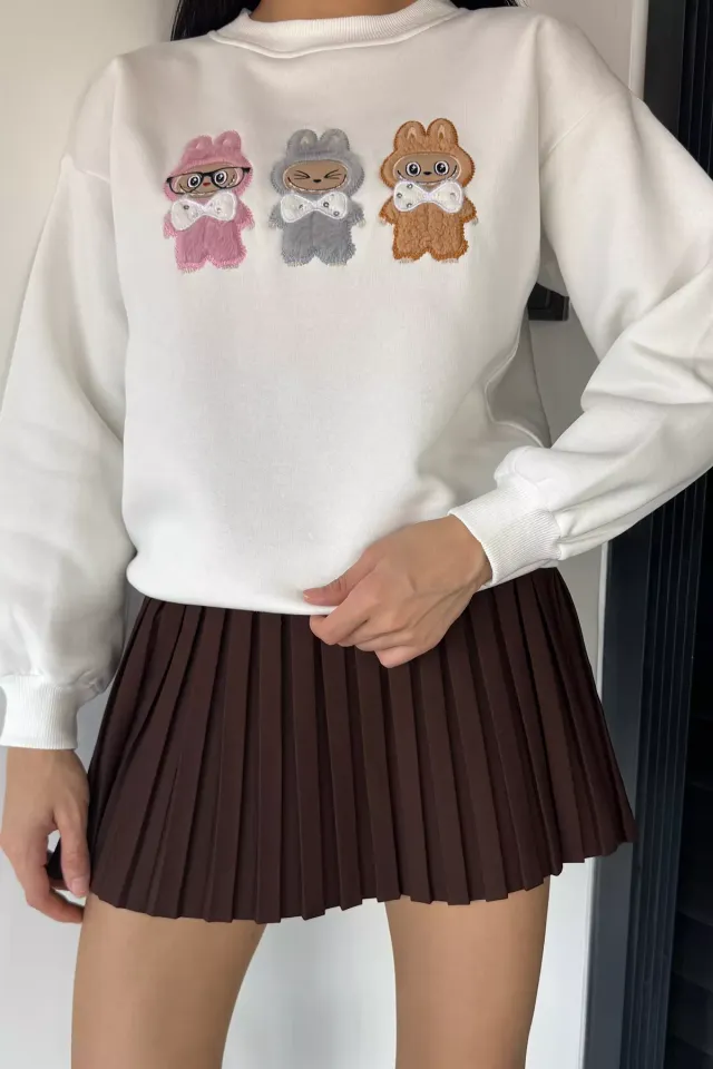 سويت شيرت نسائي ذو كتف منسدل ومطرز وياقة دائرية - Beyond Store