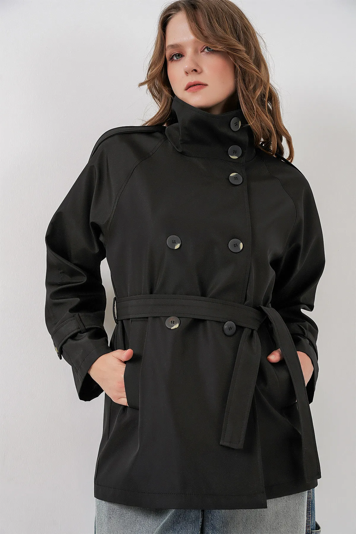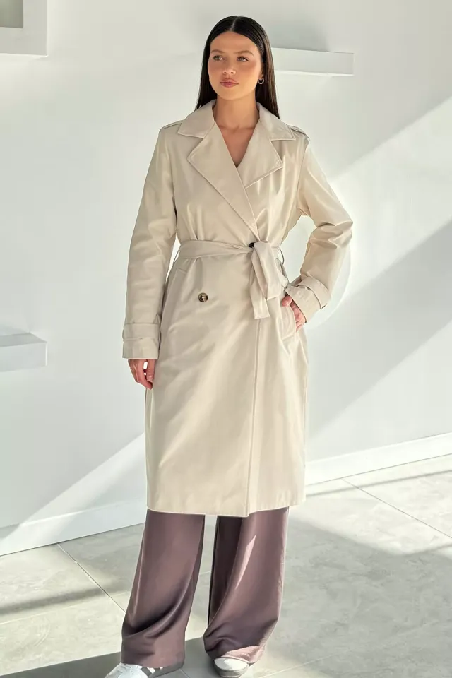 ترنشكوت مزدوج الصدر مبطن بياقة
