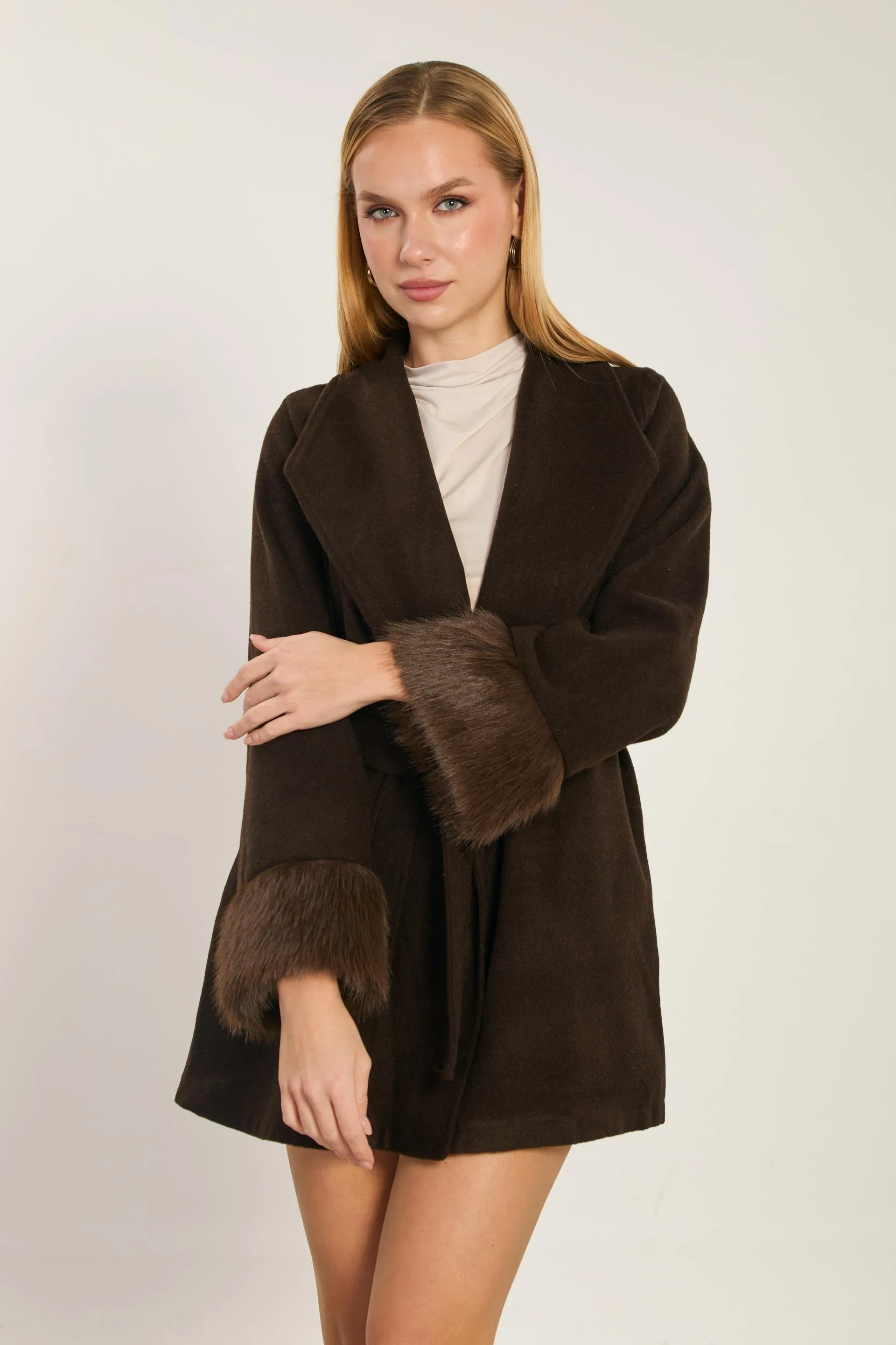 معطف طويل الاكمام بلون موحد بصدر مزدوج - Beyond Store