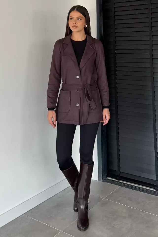 جاكيت نسائي بياقة بغطاء راس وخصر مرن - Beyond Store