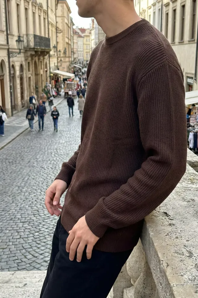 كنزة رجالية أوفر سايز محبوكة من قماش سيلانيك بسحاب نصف – أناقة وراحة مثالية
