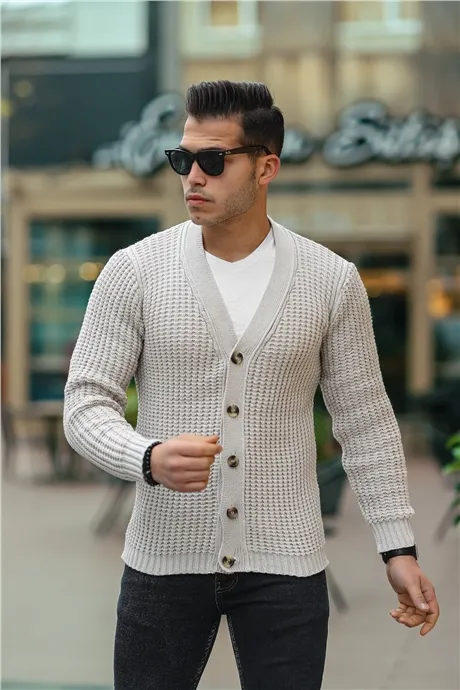 كنزة رجالية محبوكة من قماش سيلانيك المخطط بسحاب نصف – دفء وأناقة في الشتاء