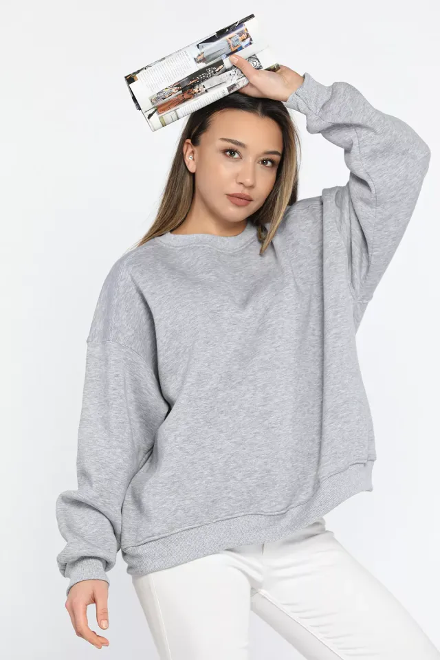 سويت شيرت كاجوال بأكمام طويلة وياقة دائرية منقوش