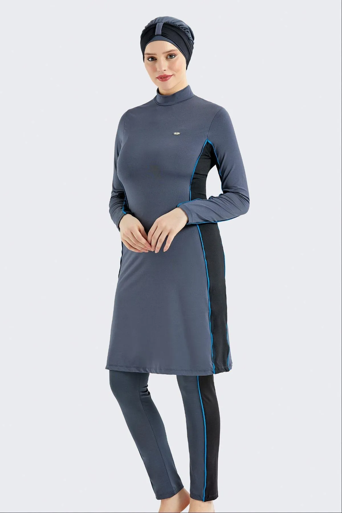 ملابس سباحة نسائية محتشمة مخططة بياقة دائرية - Beyond Store