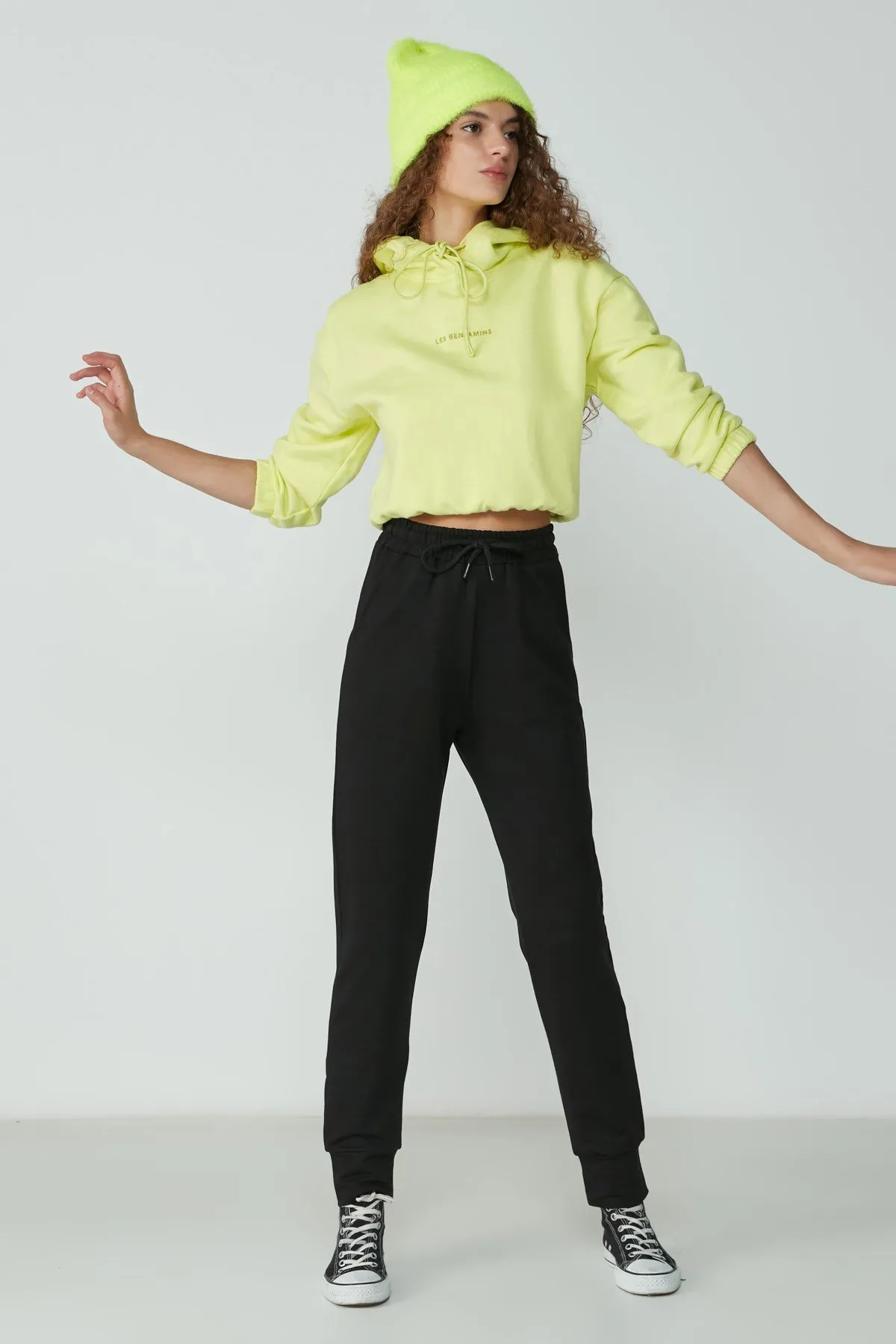 بنطال رياضي نسائي بخصر مطاطي وفتحات جانبية وساق واسعة من الأسفل