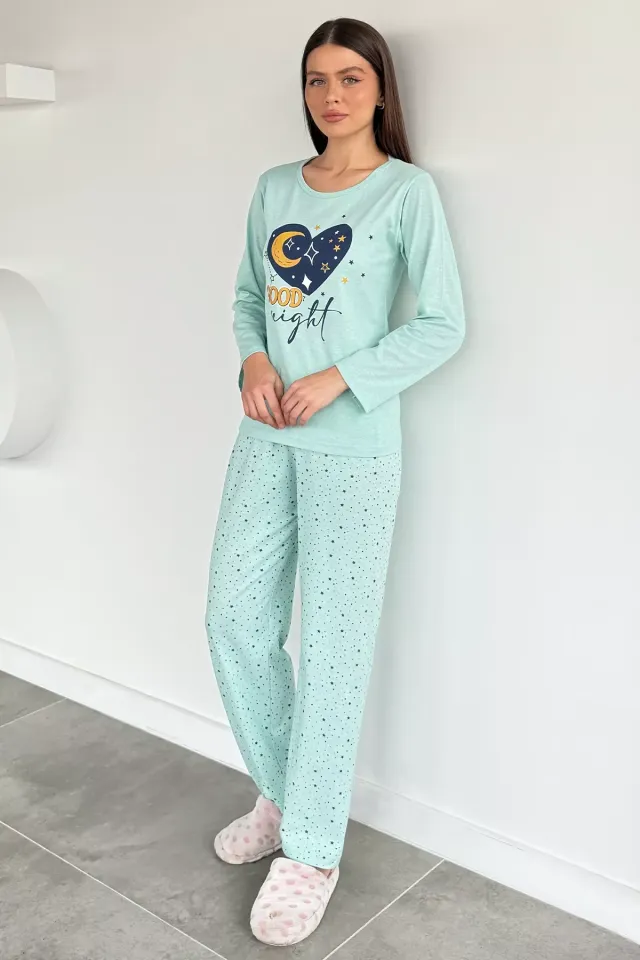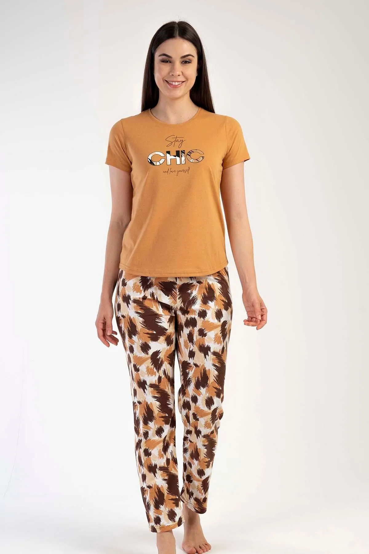 طقم بيجامة نسائية مطبوع مكون من تي شيرت وبنطلون - Beyond Store