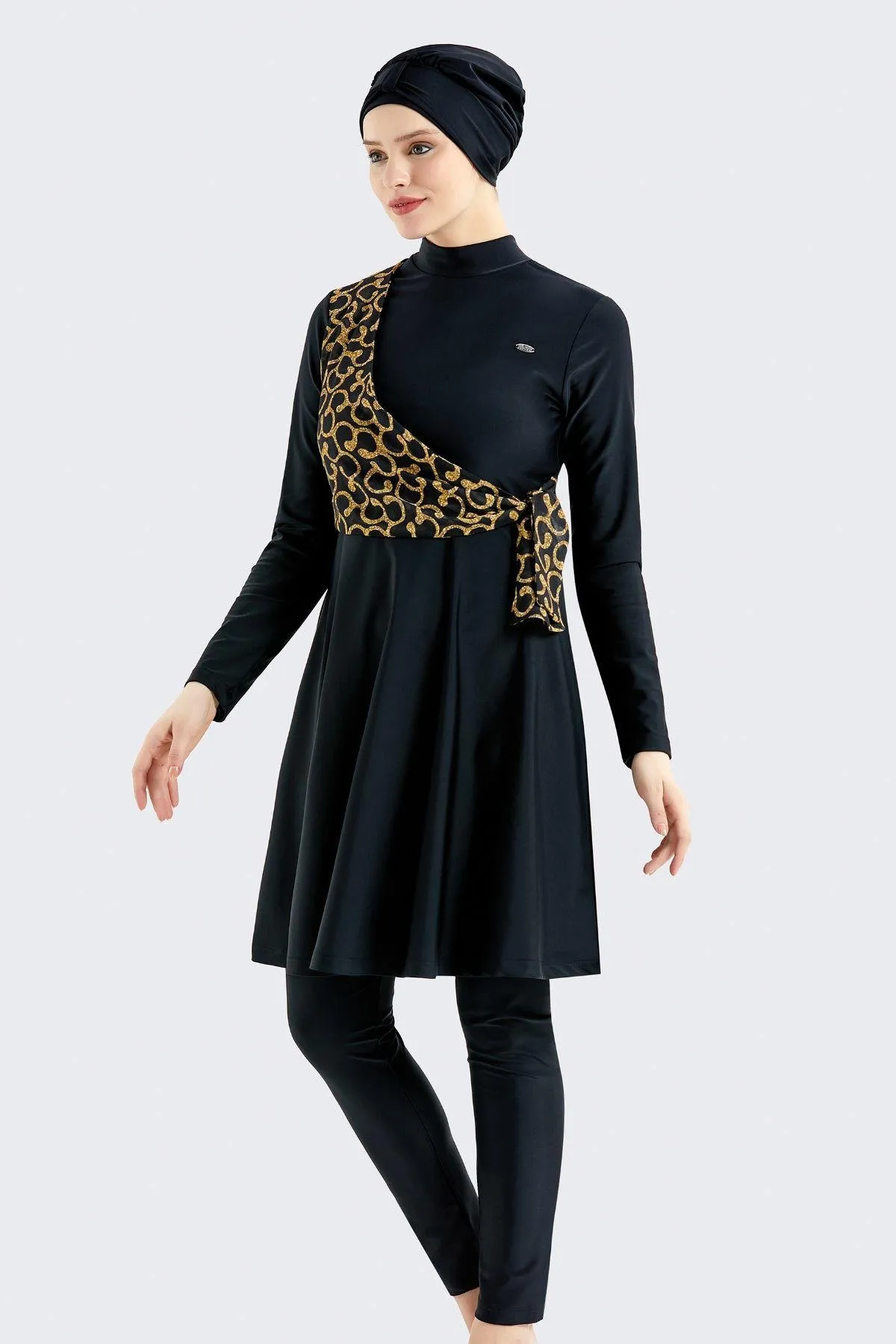 ملابس سباحة محتشمة بقبة صينية وكشكشة للنساء