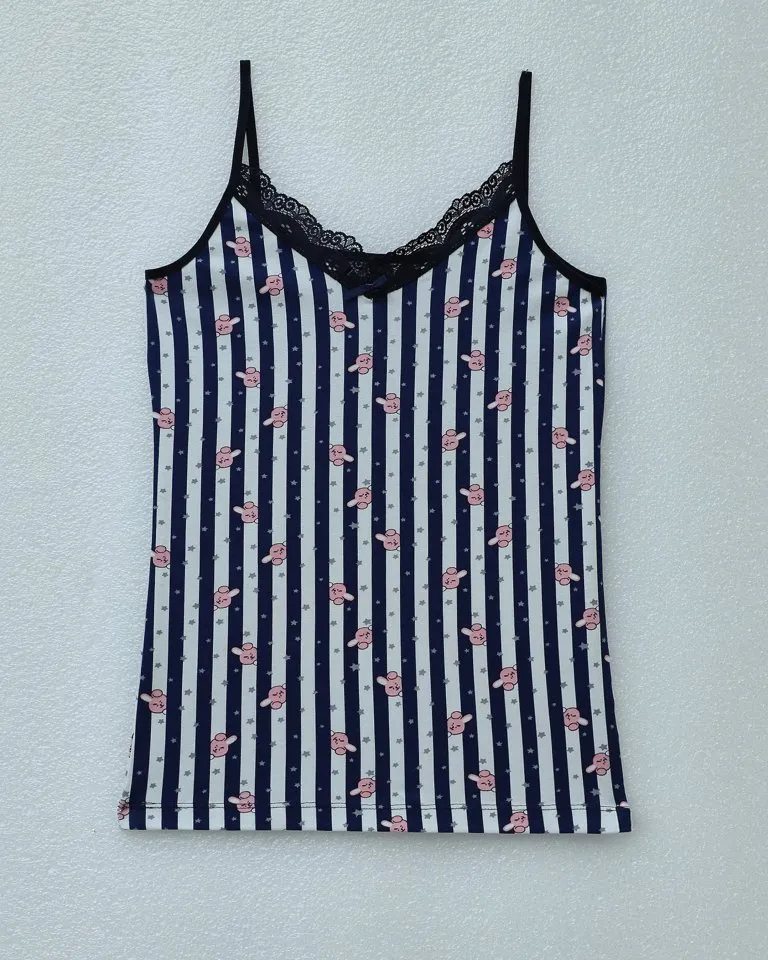بلوزة قصيرة مضلعة بقصّة عادية و ياقة U