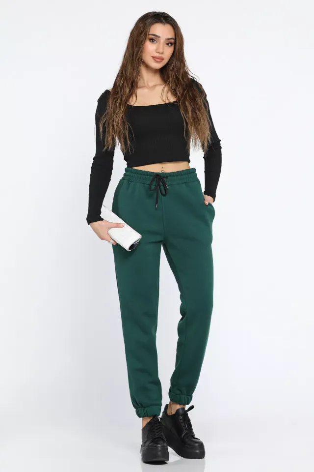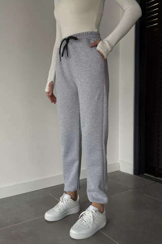 بنطال رياضي واسع الساق بخصر مرتفع، انسيابي ومريح لإطلالة كاجوال ناعمة تجمع بين الراحة والأنوثة.