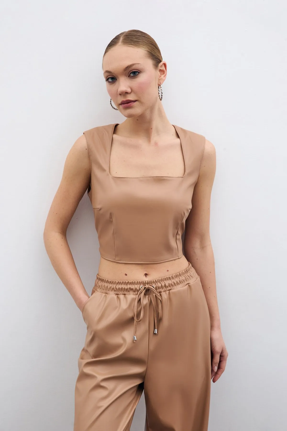 بدي يومي بقصة ضيقة بلون موحد وياقة دائرية