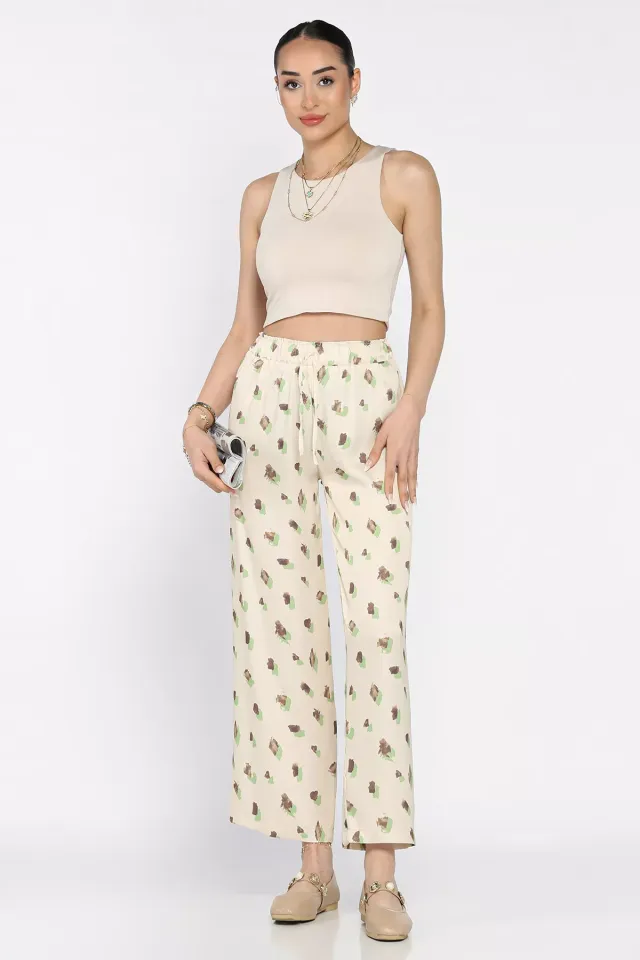 بنطال جلدي بخصر مرتفع وواسع الساق للنساء - Beyond Store