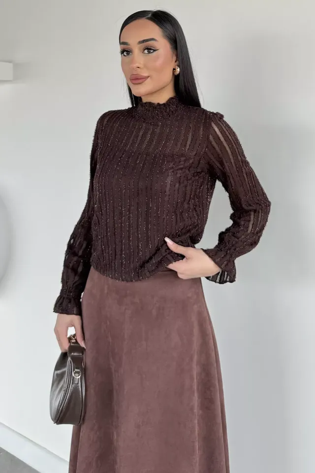 تصميم بأكمام طويلة عادية وياقة دائرية كلاسيكية