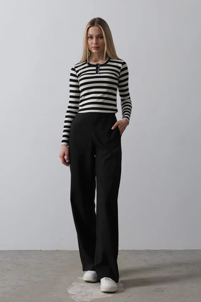 بنطلون سادة واسع الساق بخصر مطاطي وجيوب — أناقة مريحة تناسب الاستخدام اليومي بكل سهولة