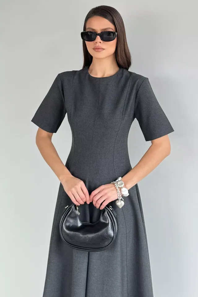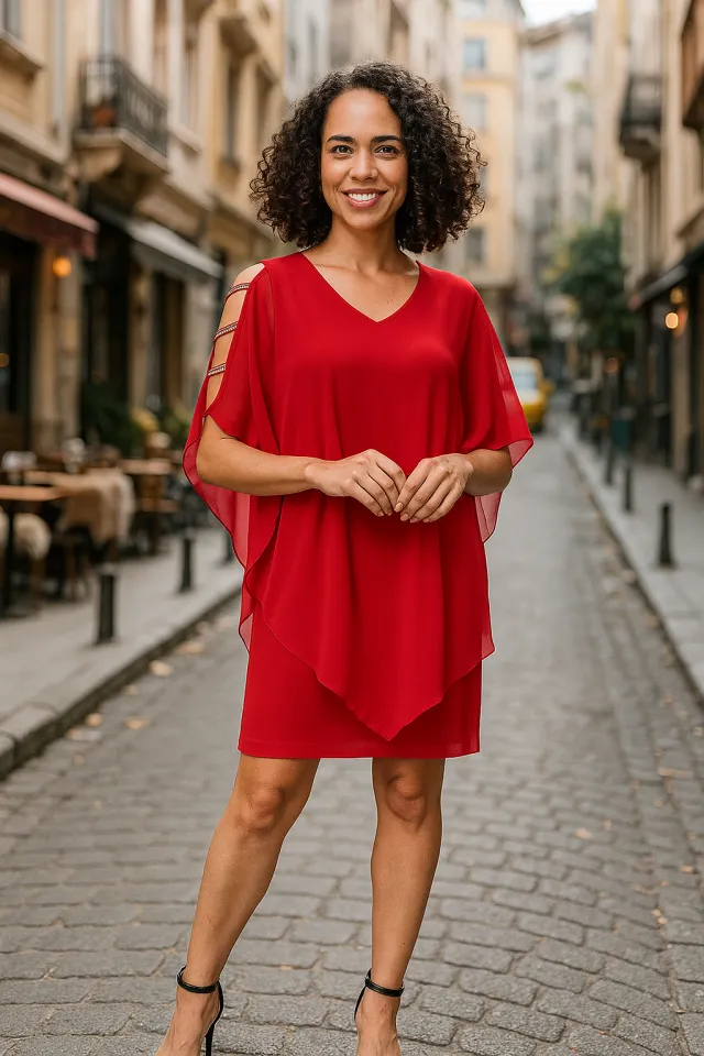فستان قصير بأكمام بيشوب وياقة دائرية مع تفاصيل رباط يمنحك لمسة أنثوية عملية تناسب الطلعات اليومية أو اللقاءات العفوية بأسلوب عصري ومريح.