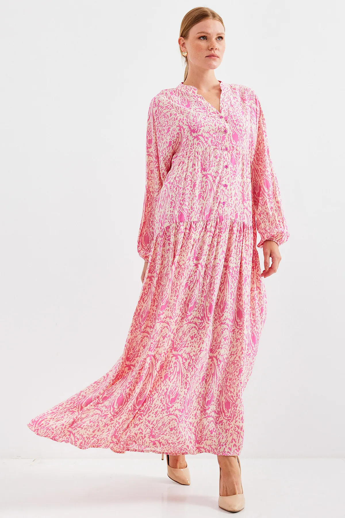 - نوع الأكمام : أكمام واسعة مزمومة من الاسفل