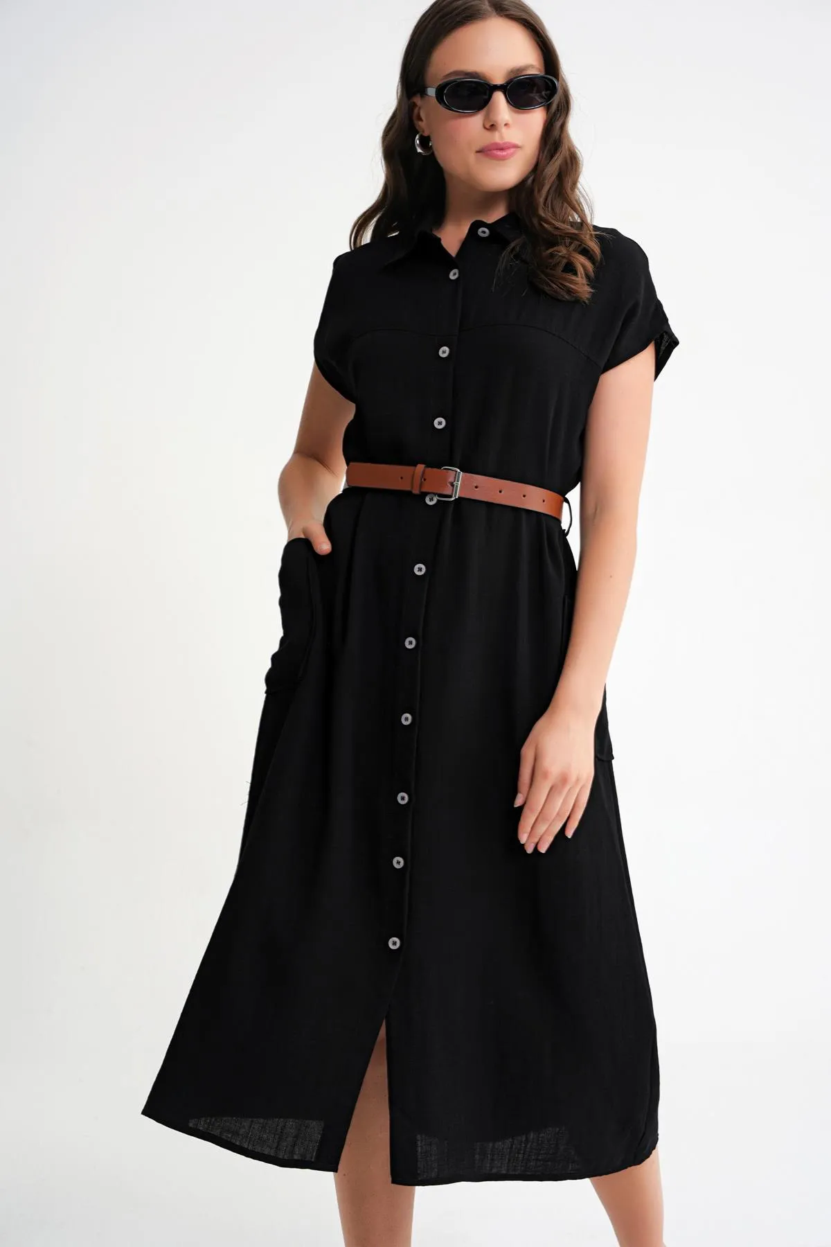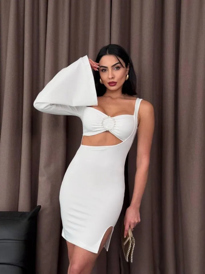 فستان قصير بأكمام بيشوب وياقة دائرية مع تفاصيل رباط يمنحك لمسة أنثوية عملية تناسب الطلعات اليومية أو اللقاءات العفوية بأسلوب عصري ومريح.