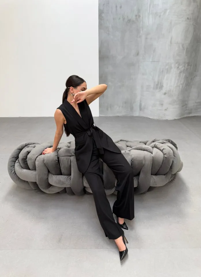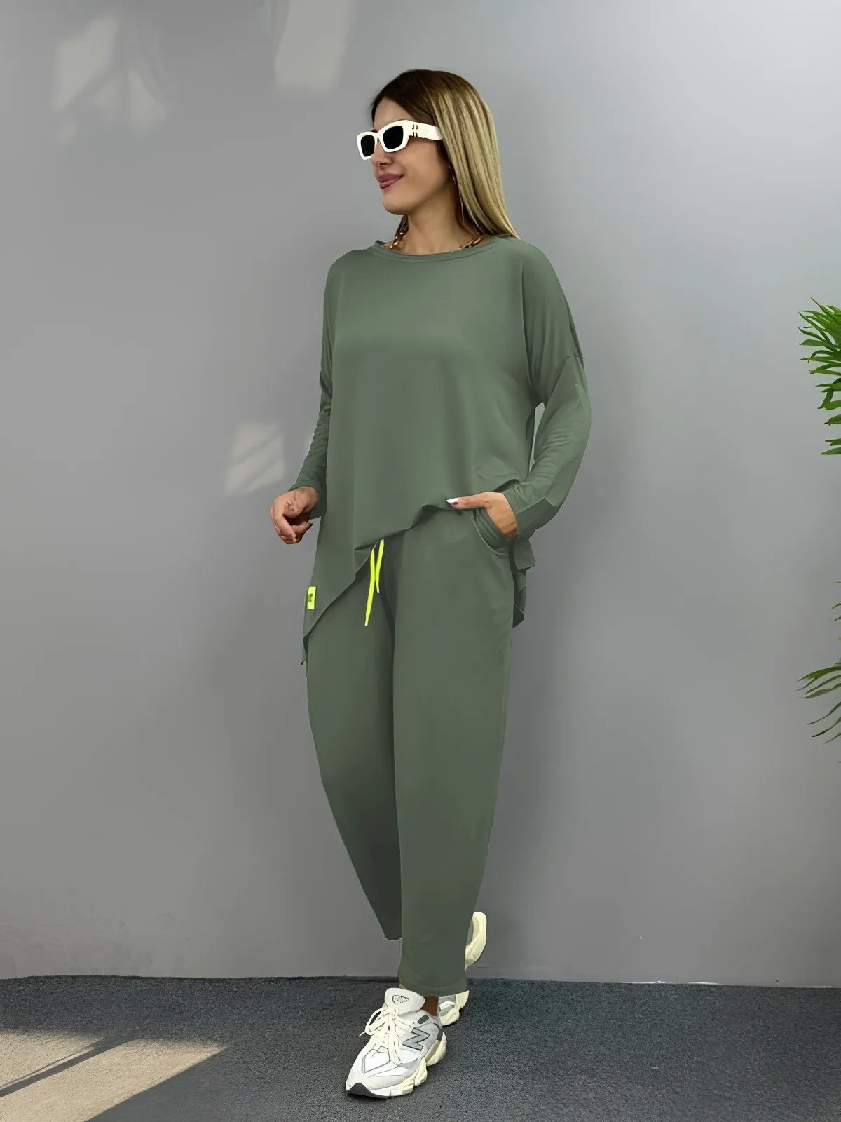 طقم بنطال يومي بأكمام طويلة وغطاء رأس وسحاب أمامي وتفاصيل ألوان متعددة يمنحك إحساس بالحيوية والدفء، مثالي للمشاوير السريعة أو الأيام النشيطة بإطلالة عصرية.