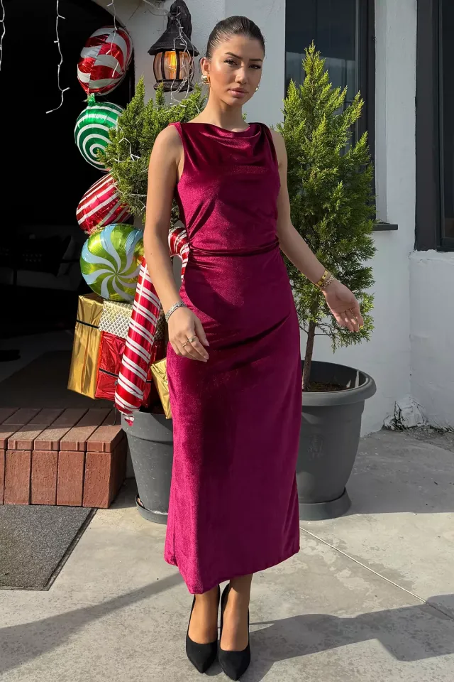 فستان ميني مخملي بصدر مزدوج وخصر مطاطي — خيار أنثوي أنيق لإطلالات المساء