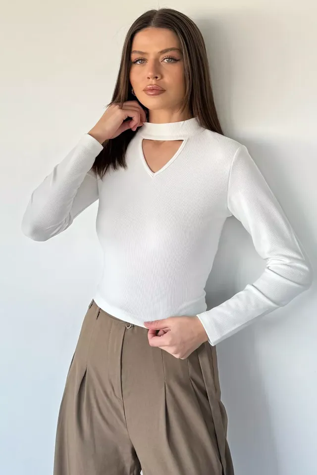 تصميم بأكمام طويلة وأكتاف منخفضة وياقة دائرية كلاسيكية