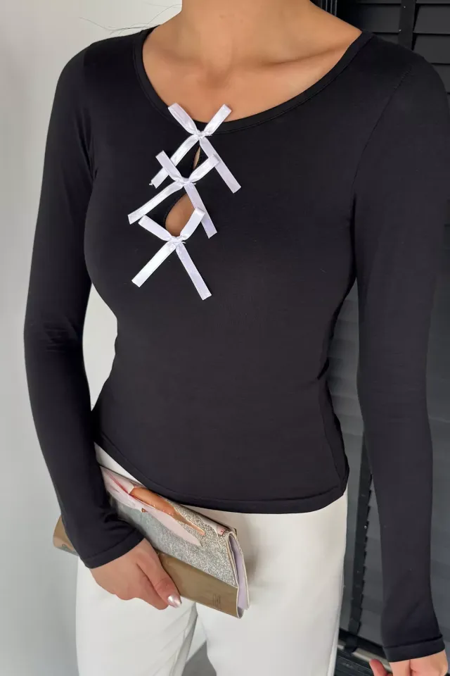 بلوزة واسعة بياقة V وتفصيل عقدة أمامية، قصة أنيقة ومنسدلة تناسب عزومات العشاء، الطلعات الرسمية الخفيفة، أو إطلالة نهارية راقية.
