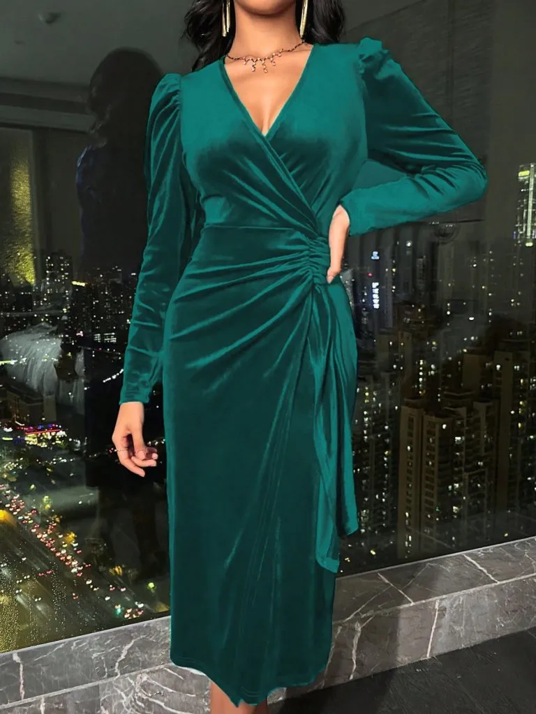 فستان قصير مخطط بأكمام طويلة وقصة ضيقة، تصميم عصري وأنيق لمشاوير النهار والعمل واللقاءات الأنيقة