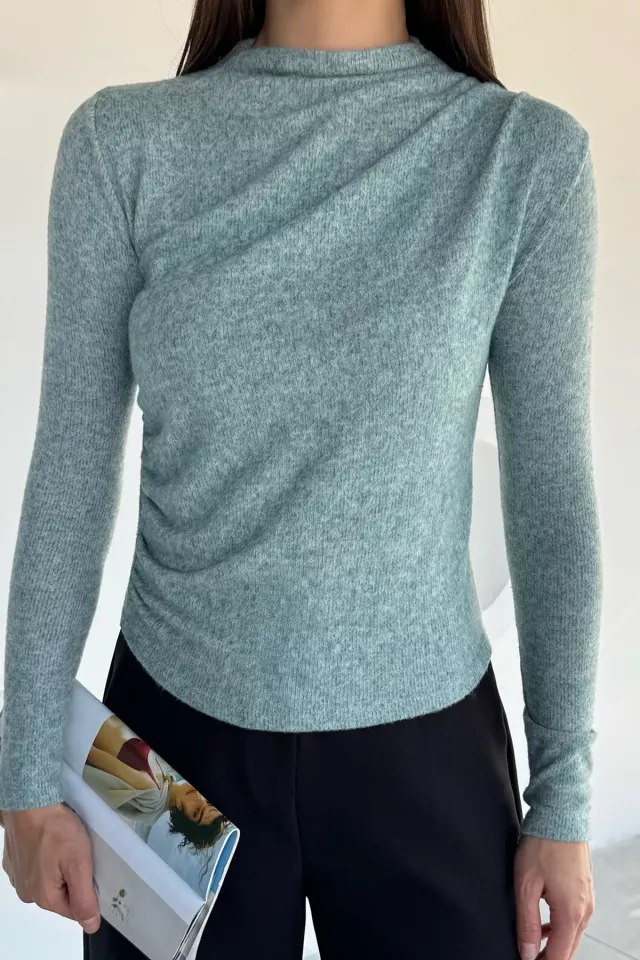 بلوزة ضيقة بياقة V وأكمام طويلة، تبرز القوام بأسلوب أنيق وجريء، مثالية لسهرات العشاء، إطلالة كاجوال فخمة، أو تنسيقها تحت معطف.